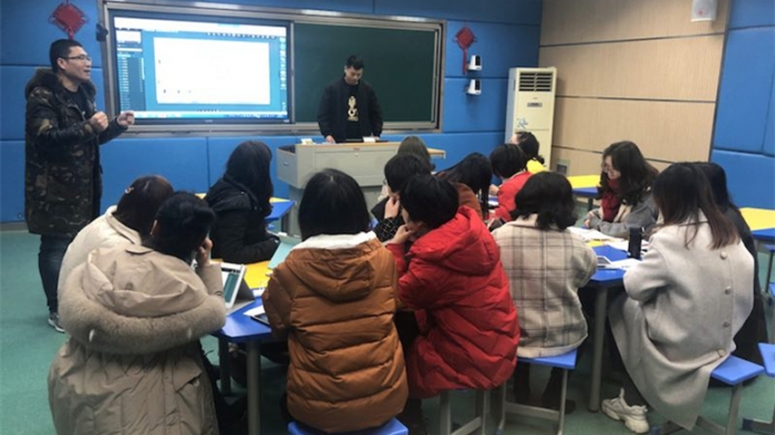 过程中,指导老师对如何登录乐课网、如何进行课件上传、设置临时课表以及各个选项的功能操作等进行了具体细致的指导;一边演示、一边解说,并邀请一线老师亲自动手操作,发现过程中的一些问题并予以解决。老师们纷纷表示,在注重教师权威的课堂上,学生不敢主动发言;而运用这样的方式学习,学生能更自然地参与到互动学习中。同时,平板电脑用于开展课堂大数据分析、精准教学,体现出来的优势更大。