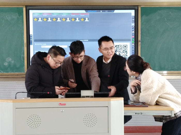 3月12日,春光明媚,湖塘中学邀请Hiteach公司高级技术师来校作技术指导。来自各校的教育技术高阶研修班学员在技术老师的指导下,孜孜不倦的学习教学新技术,学员们你一言,我一语,迫不及待地向技术老师提问,技术老师则一一作祥细解答。