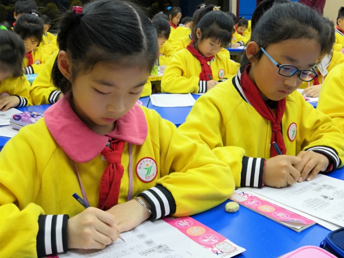 4月30日下午,柯桥区实验小学的录播教室里,一节不同寻常的书法课开讲了。由实验小学的书法教师周关洪老师执教的《左右结构(一)》,通过网络和稽东镇中心小学的书法课堂进行同步教学,完成了一次城乡书法课堂同步,实现了城乡教育资源共享。