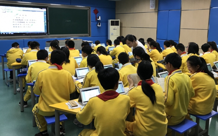 5月14日上午,柯桥区实验小学教育集团老校区与稽东小学开展了“城乡携手,同步课堂”活动。此次开展的“同步课堂”,主课堂是实验小学老校区,分课堂是稽东小学,由陈飞琴老师执教六年级语文课《石灰吟》。