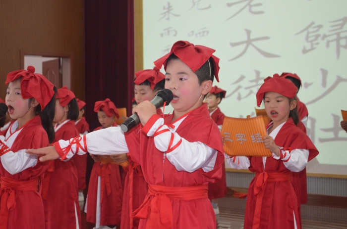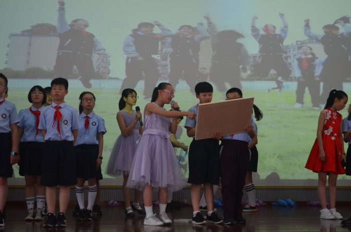 六年级同学“感恩母校,感恩老师”;三四年级同学和大家分享成长的快乐;一二年级吟诵经典,胸怀祖国。