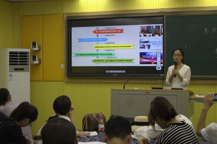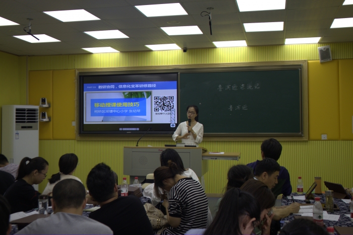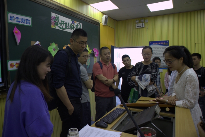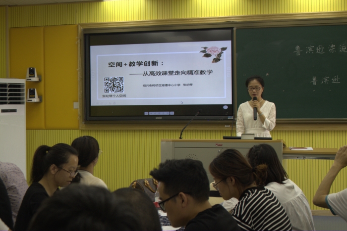 张幼琴副校长还向来访的教师介绍了我校基于教育技术变革教育教学的经验《空间+教学创新——从高效课堂走向精准教学》。需求导向,信息化变革学教方式课程创生;课程创生,信息化变革多维空间教研协同;教研协同,信息化变革研修路径;家校联动,信息化变革教育评价 。