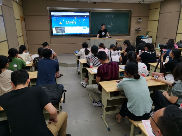 下午,武汉天喻的杨玉丽、何子琴分别介绍柯桥区云平台名师工作室的建设与智慧校园的最新应用,最后楼宽老师进行了智慧校园平台应用的相关培训。