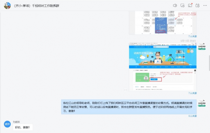 我校与茅坂小学开展名师课堂网络直播观摩学习活动。两校通过建立工作联系钉钉群,及时发布齐贤小学名师工作室网络直播课程信息。茅坂小学通过组织教师集中收看,在线点评,线下交流的形式进行优质课堂的展示分享,取得了参与老师的较好评价。
