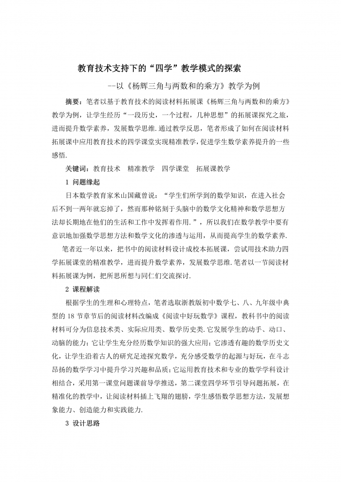 教育技术支持的四学课堂教学模式的探索