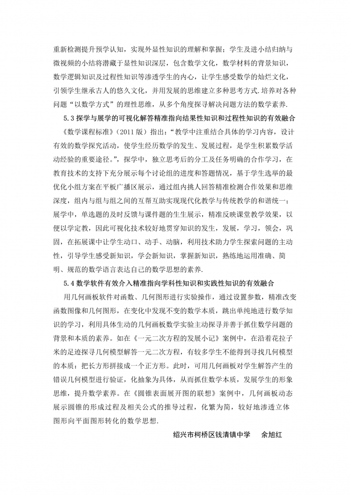 (注:作者 余旭红 绍兴市柯桥区钱清镇中学 此文获2019年柯桥区教育技术应用专项论文一等奖)