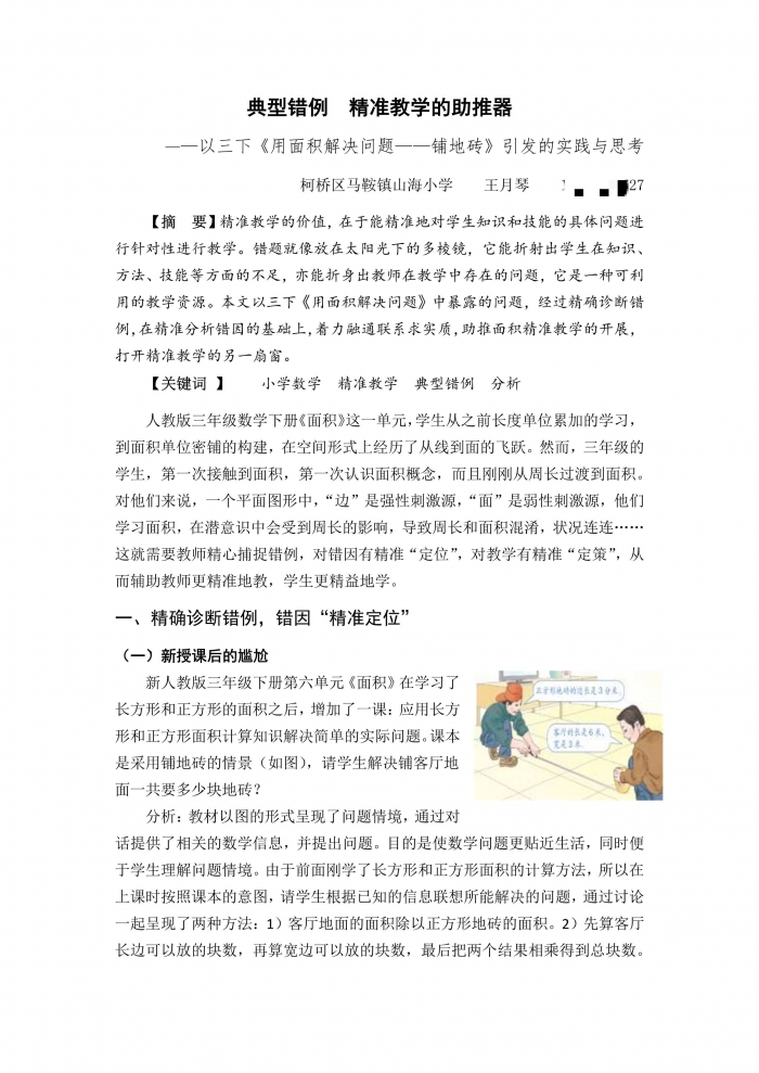 (注:作者 王月琴 绍兴市柯桥区马鞍镇山海小学 此文获2019年柯桥区精准教学专项论文一等奖)