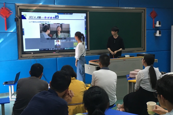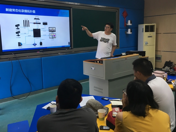 之后技术装备相关负责人从面板操作,视频下载到网页互动等方面向与会教师详细阐述了常态录播的使用操作方法。随后技术装备人员还邀请老师进行了异校互动的实际演示,加深了老师们对常态录播的了解。最后省智慧教育联盟的工作人员还介绍了hiteach互动课堂软件的使用方法。