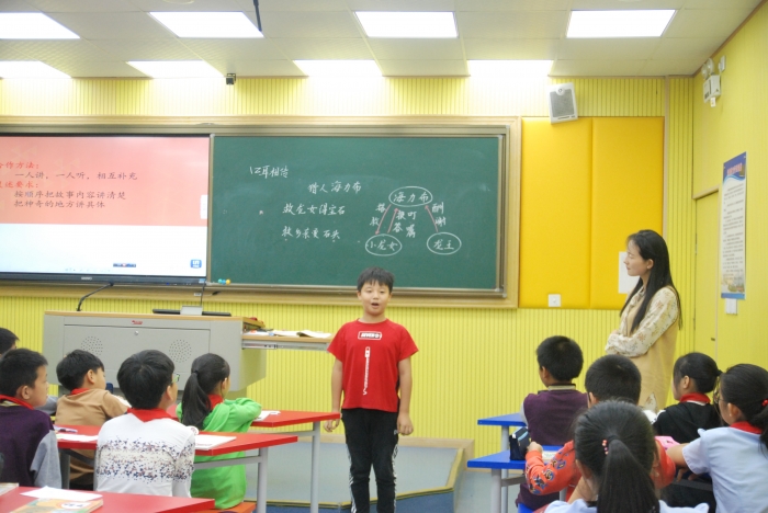 上午高文琴老师的《开国大典》、汤彦老师的《猎人海力布》、胡君老师的《竹节人》三节课,赢得了两位专家的一致好评。三位老师都从对话、语境、情境三方面入手开展教学活动。用无障碍的信息交流与表达,思维的高度、宽度与纵横度,开启了孩子们思维的闸门。从低到高,由浅入深,课堂富有教学艺术,课堂有效、高效。三位老师从内容、形式上做了创新,都进行了现场生成的的建构。更值得称赞的是,三位老师都很娴熟地运用了白板技术,圈圈点点、做好旁注,用教育技术,使课堂变得熠熠生辉。