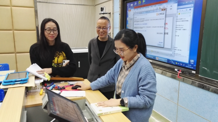 首先,借助“天天智慧”课堂平台,语文组骆月琴老师开设了一堂关于名著《水浒》的阅读指导课。骆老师通过指导学生寻找小说人物形象探究的角度,帮助学生建立对文本的整体感知,从而达到启发学生“在阅读中思考”的目的。随后,语文组老师进行了专题教研,点评了课堂教学,并对今后的阅读教学活动的开展进行了研讨。最后,信息技术教研组全体教师就教学过程中教育技术应用所存在的问题作点评,并与开课教师进行了关于“技术与学科相适应”的专题探讨,令语文组教师深受启发,纷纷表示要加强教育技术应用的实践。