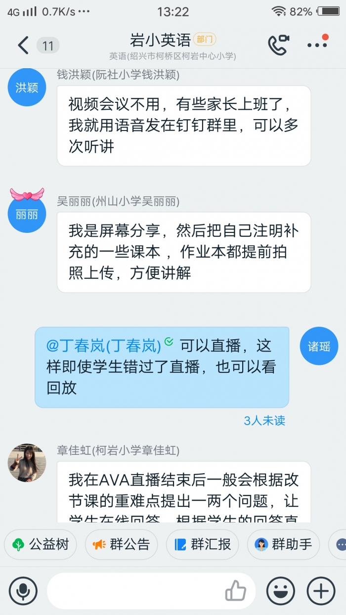 音乐组:评价形式的多样化。虽然音乐课不进行直播教学,可评价学生的学习效果岩小音乐老师也有自己的小妙招。作业提交回答,唱歌、表演视频都成为老师们的课后评价形式。