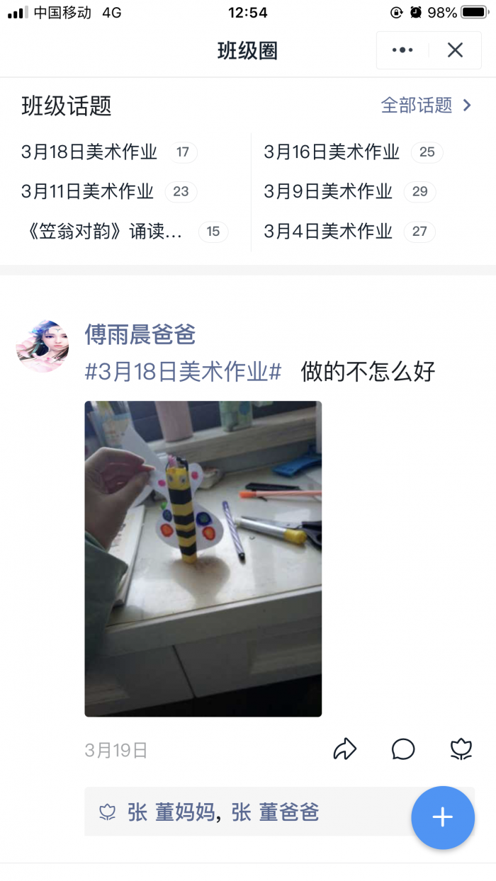 美术组:利用班级圈展示学生美术作业,让学生在激励中你追我赶。