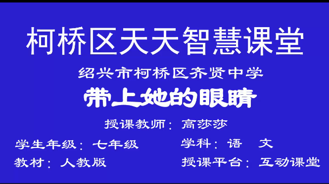 2020年5月6日,本学期的第一期“天天智慧课堂”如约而至。齐贤中学高莎莎老师给大家带了一节题为《带上她的眼睛》的语文课。它围绕单元教学中的提示“触摸探险者的精神世界,激发学生的兴趣和想象力”进行设计的,从“科幻之旅”感知文章内容,到“品读之旅”分析人物形象,再到“英雄之旅”学写颁奖词,并将新技术融入到课堂中,旨在让学生感受人物的精神品质,从中获得对美好人性的理解。