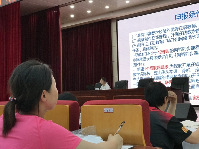 张老师从网络同步课程的作用与意义,网络同步课程的开发以及网络同步课程的建设等方面向全体老师做了详细的介绍。这之前老师们对网络同步课程知之甚少,经过张老师的培训,老师们初步了解了网络同步课程,有些老师甚至表示可以试着做网络同步课程。