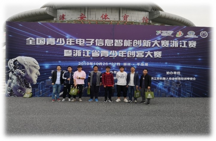 钱清中学机器人社团创建于2017年,主要由学校创新团队教师担任社团指导老师,目前在国家、省市各类机器人比赛中已获奖30余人次。其中2018年ROBOCUP机器人世界杯中国赛,获得两个全国一等奖,并作为高中组唯一代表进行了发言,2019年浙江省智创大赛中参加的两个项目均获得冠军。
