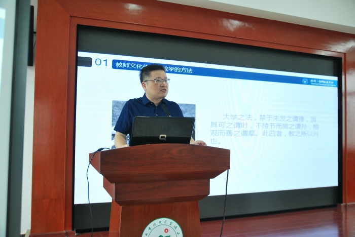 随后,柯桥区教师发展中心鲍国潮老师给全体教师作了《基于合作的教师文化》的报告。鲍老师博古通今、旁征博引,用一篇《学记》为老师们精心地梳理了教学中经常会碰到的问题:什么是教学、评价教学的标准、教学的规范、教学的方法、当今教育具体表现、教师文化形态等。老师们听得仔细,记得认真,认真思索,寻找到了教育教学坚定的方向。